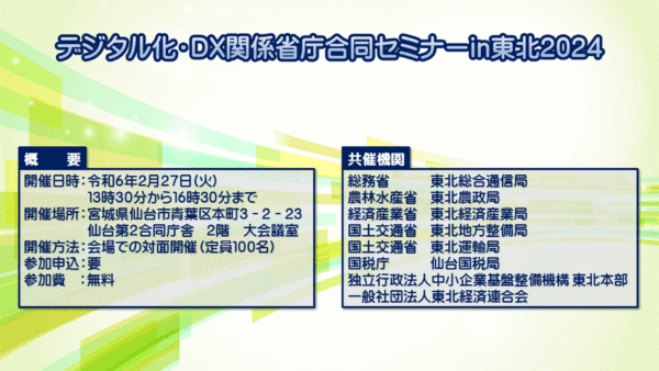 国税庁仙台国税局、独立行政法人中小企業基盤整備機構 東北本部、一般社団法人東北経済連合、東北情報通信懇談会